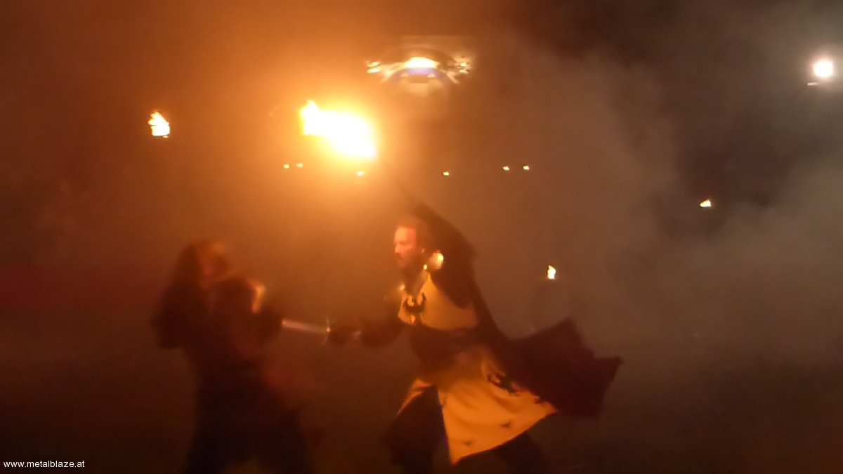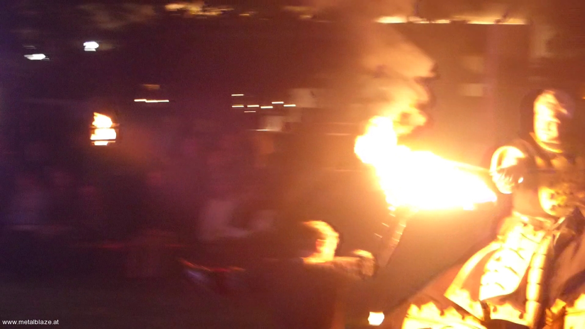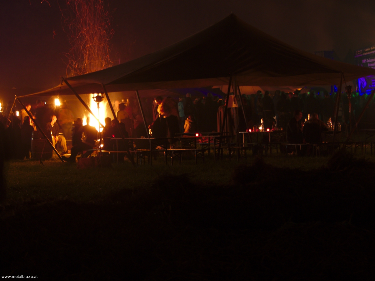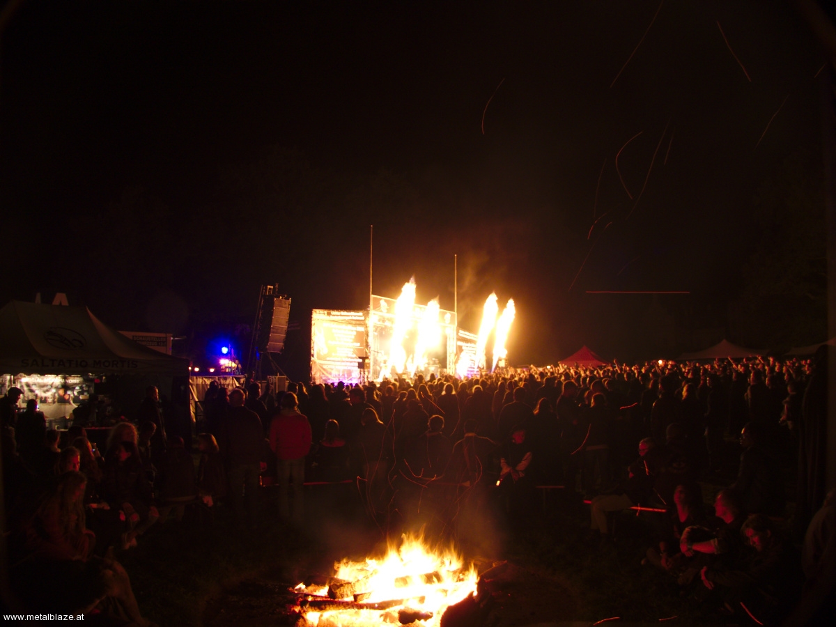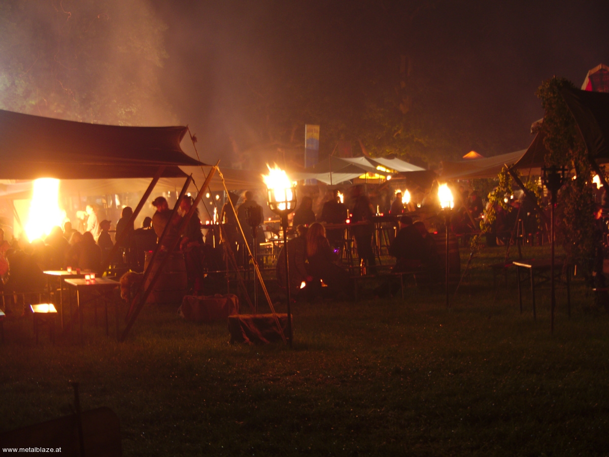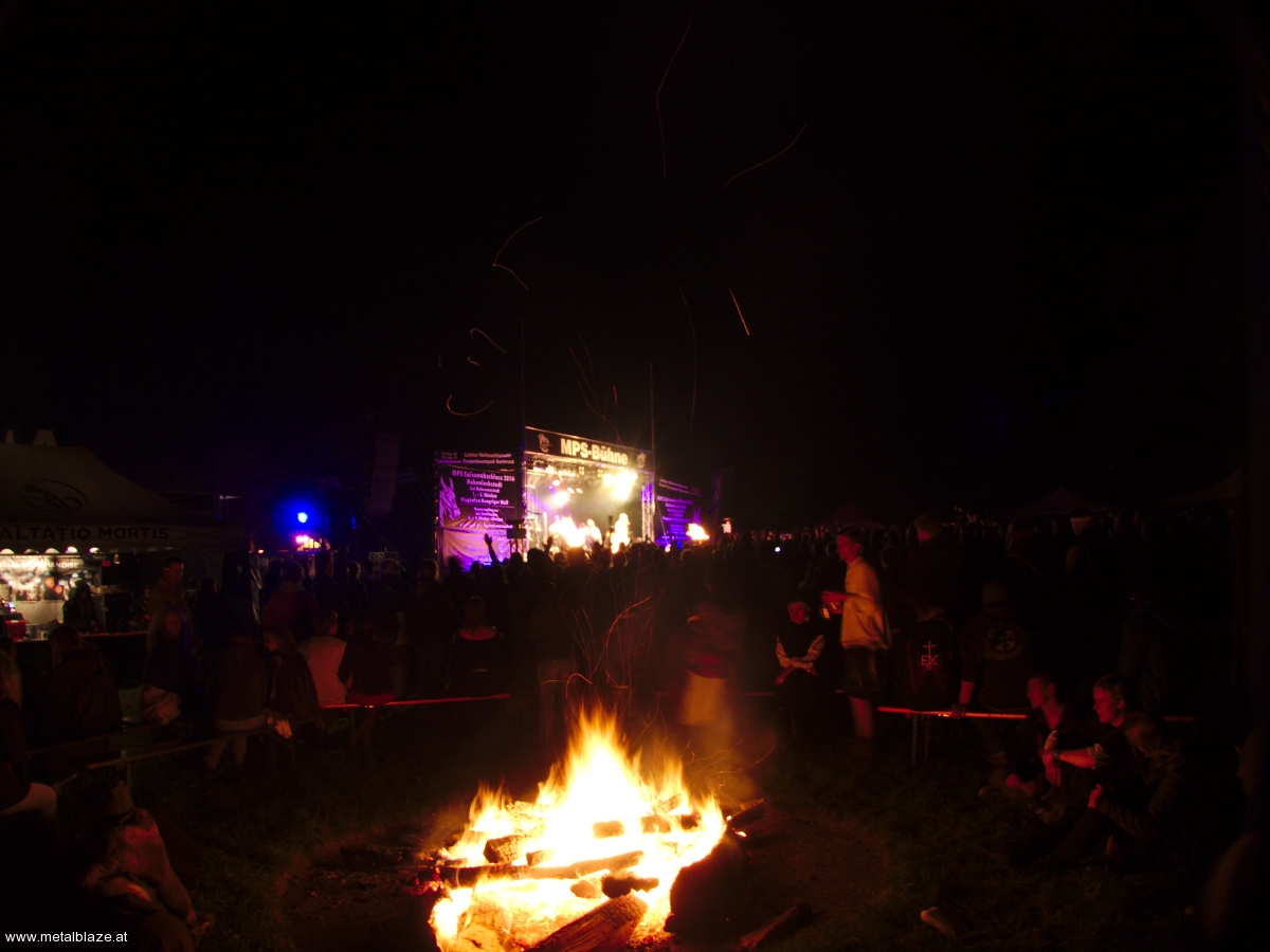 Highlight waren definitiv Saltaio Mortis, die wie immer eine Mittelaltershow spielten, also für alle SAMO Fans, da geht es etwas gemütlicher zu als auf den Rockkonzerten, dafür aber mit einen der imposantesten Feuershows die man je gesehen hat. Und wer das Prometeus Video der Provocatio DVD kennt (welches übrigens auf dem MPS aufgenommen wurde ), die haben da nochmals aufgerüstet. Hier am MPS kann man die Jungs hautnah erleben, z.B. am Metstand der Drachenschenke, wo auch wir in den Genuss gekommen sind Lasterbalk ein Interview abzuluxen. Aber auch die anderen Bands sollte man nicht außer acht lassen, Versengold und Corvus, lieferten eine wahnsinnig gute Show ab. Und bei Metusa wurde auch der ein oder andere Gast auf die Bühne geholt.
