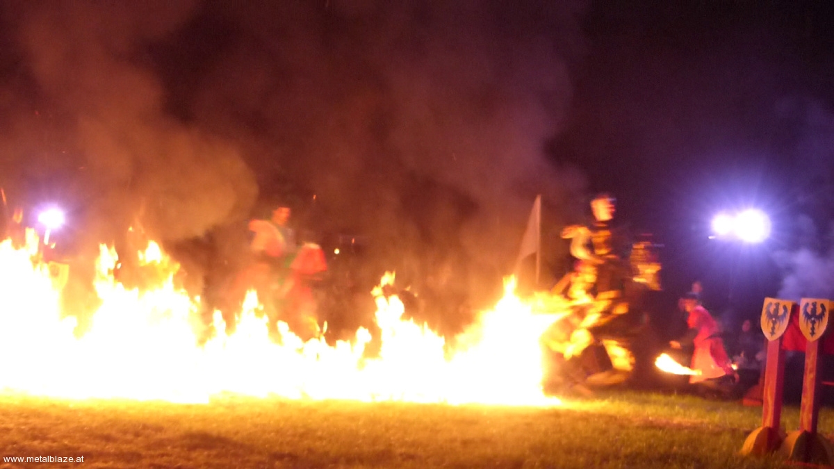 Zu einem der Highlights und leider in den letzten Jahren sehr selten gewordenen Attraktionen auf den Märken gab es ein Tournier hoch zu Ross von der Gruppe Compania, welche auch in den Nachtstunden eine Show ablieferte die ihres gleichen sucht. Ritter die mit Feuer kämpfen, Pferde die durch Flammenwände laufen, umrundet von einer Mystisch angehauchten Geschichte. Sehr Imposant und Interessant. Etwas vermisst wurde der Tod bei diesen Auftritt, der ansonsten immer die Rolle des Bösen übernahm und für ein Gänsehautfeeling sorgte.